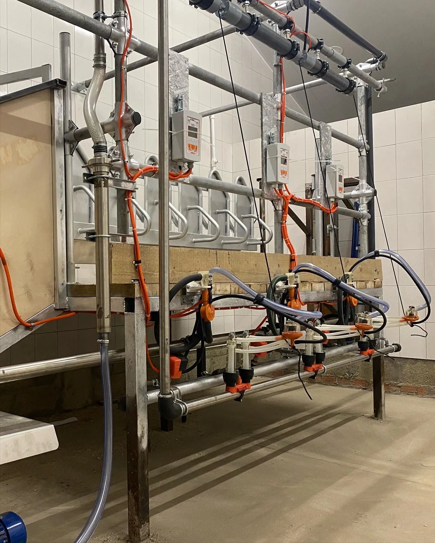 Доильные посты управляется контроллером GLOBAL IDS, оборудованы проточным счетчиком молока и вакуумным цилиндром автоматического съема. Используется подвесная часть (доильный аппарат) PANAzoo. Установка также включает площадки промывки, молокоприемный узел (молокоотборник), молочный фильтр и пр.