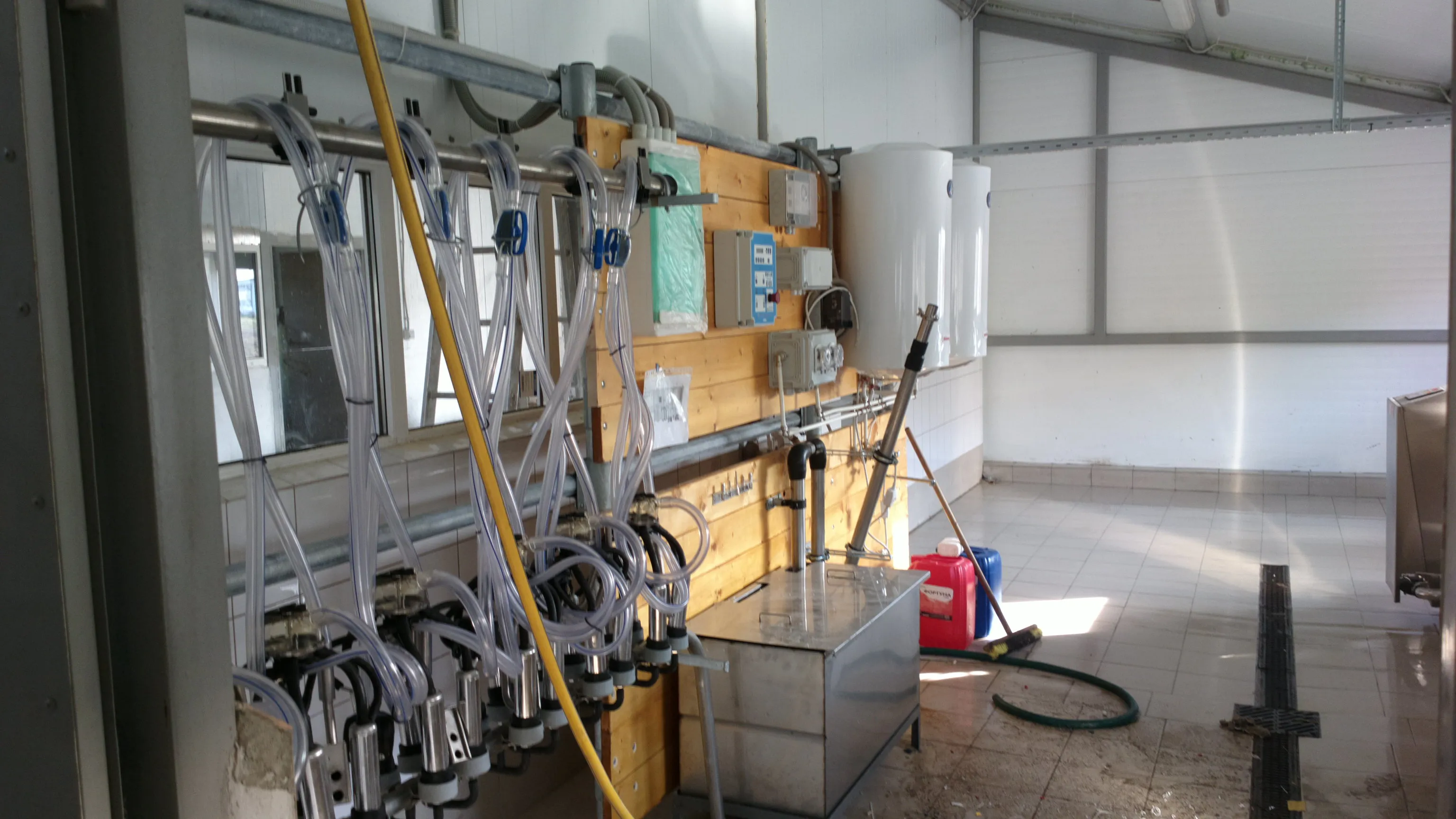 Доильная установка с молокопроводом на 60 голов. Разгонная вентиляция. Два танка-охладителя по 1т.
