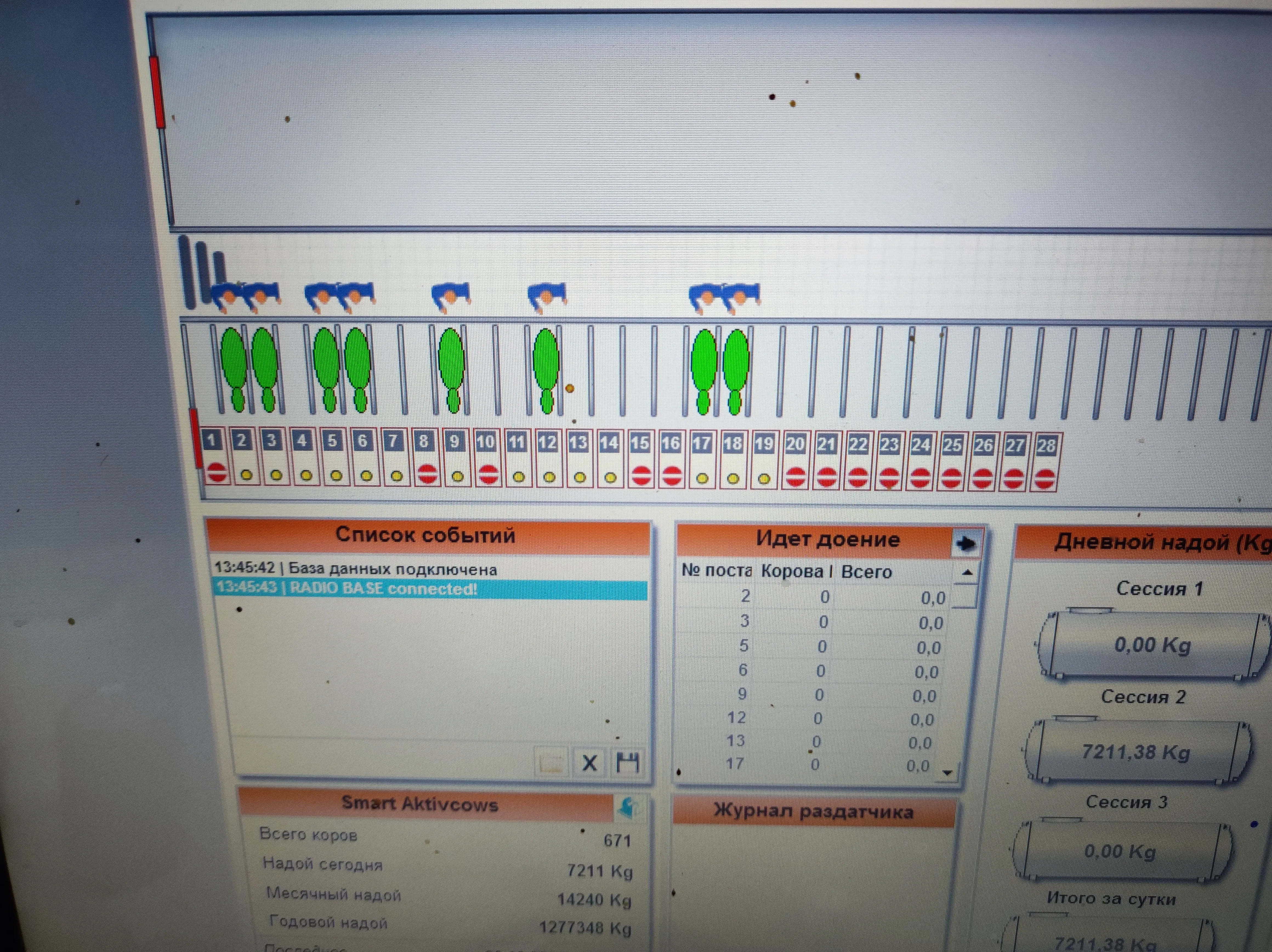 Данные о доении передаются с помощью беспроводной связи в программу управления стадом MPC.