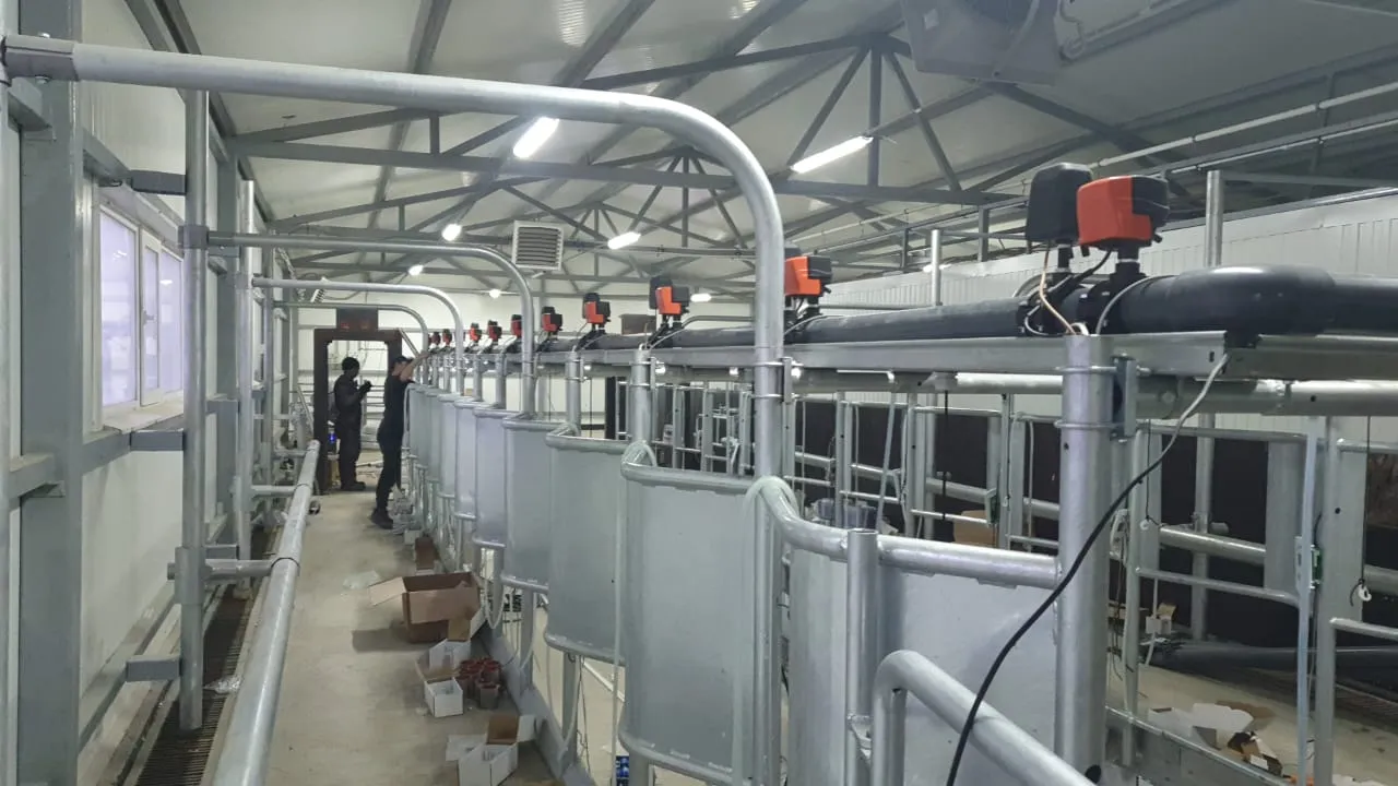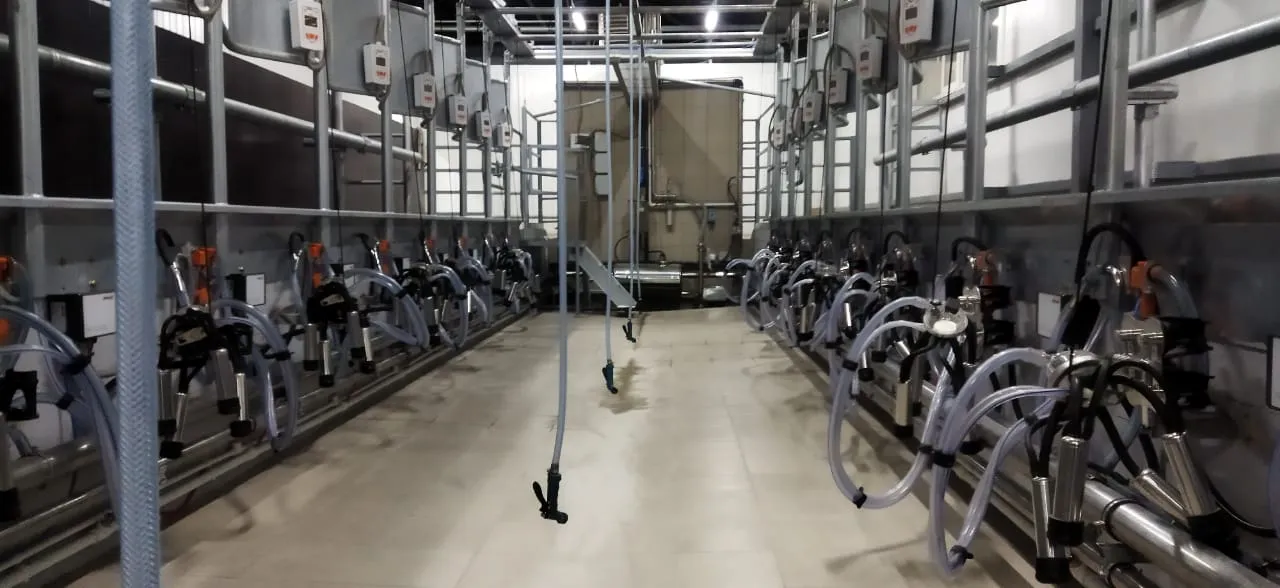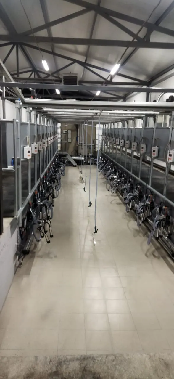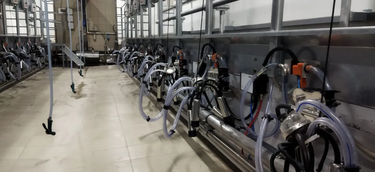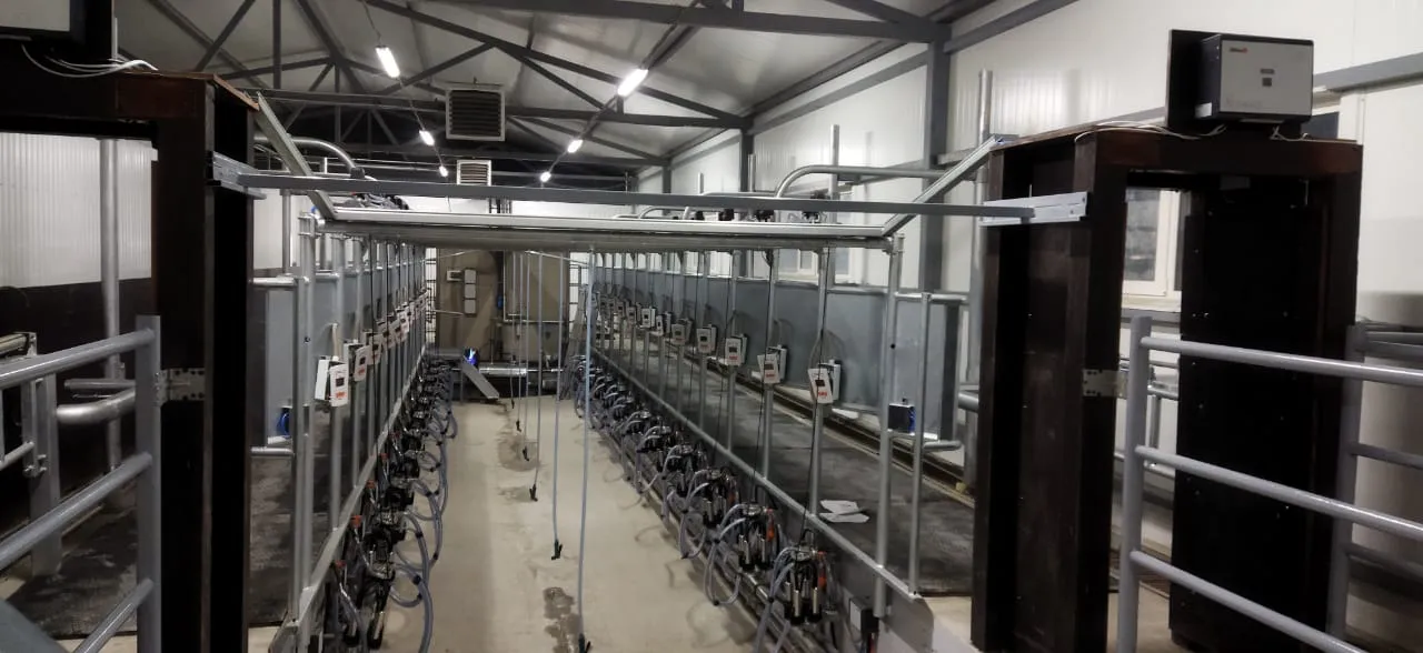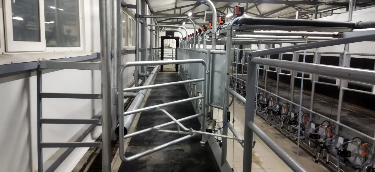 Доильный зал оборудован установкой «Елочка» для доения коров на 24 места производства Агроферма. Каждое доильное место управляется контроллером PANAzoo Global IDS, которые объединены в единую сеть для передачи данных в программу управления стадом DFM+.